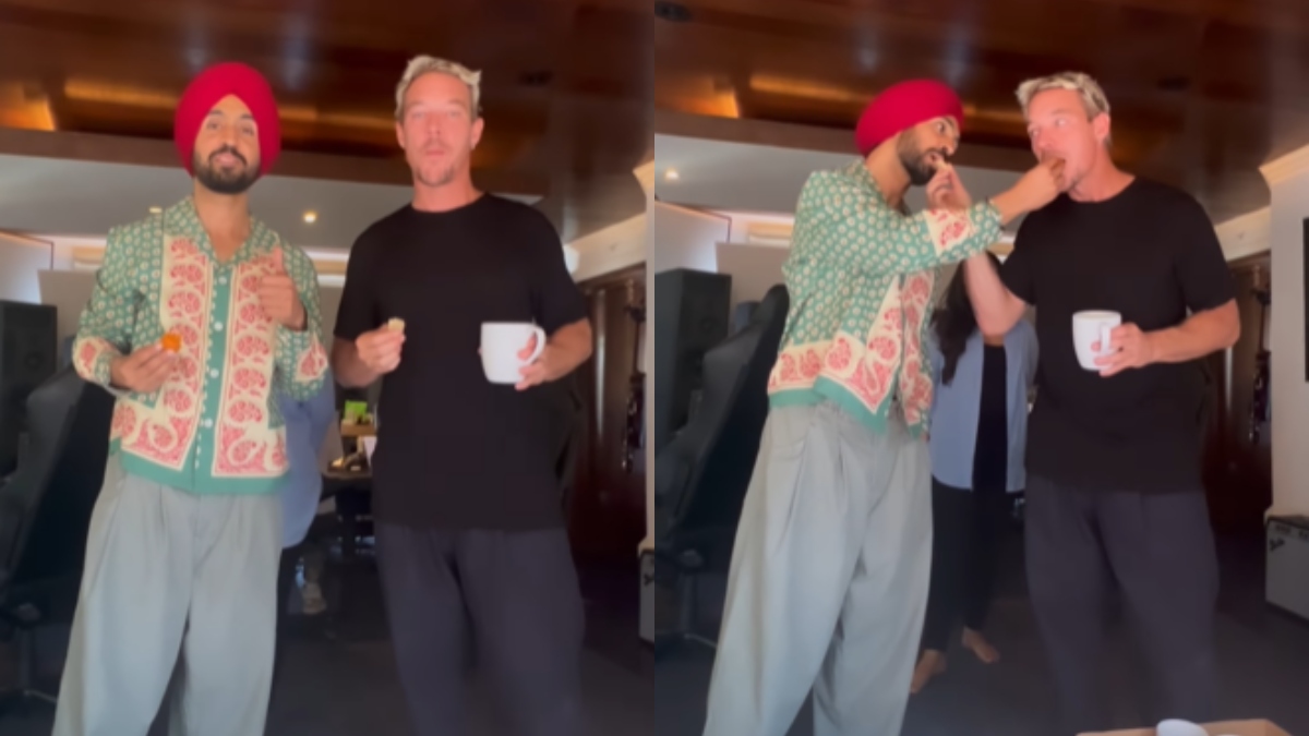Diljit Dosanjh made history as he became the first Punjabi artist to perform at Coachella. On Monday, the singer posted various photos on his Instagram account, ranging from playing on stage to posing for the cameras in elegance. However, one image, in particular, caught our eye, in which he can be seen sharing a laddoo and Kaju Katli with American DJ Diplo behind the stage. Diljit Dosanjh looks elegant in a green motif shirt and pants, while Diplo looks effortlessly casual in a black tee and pants.